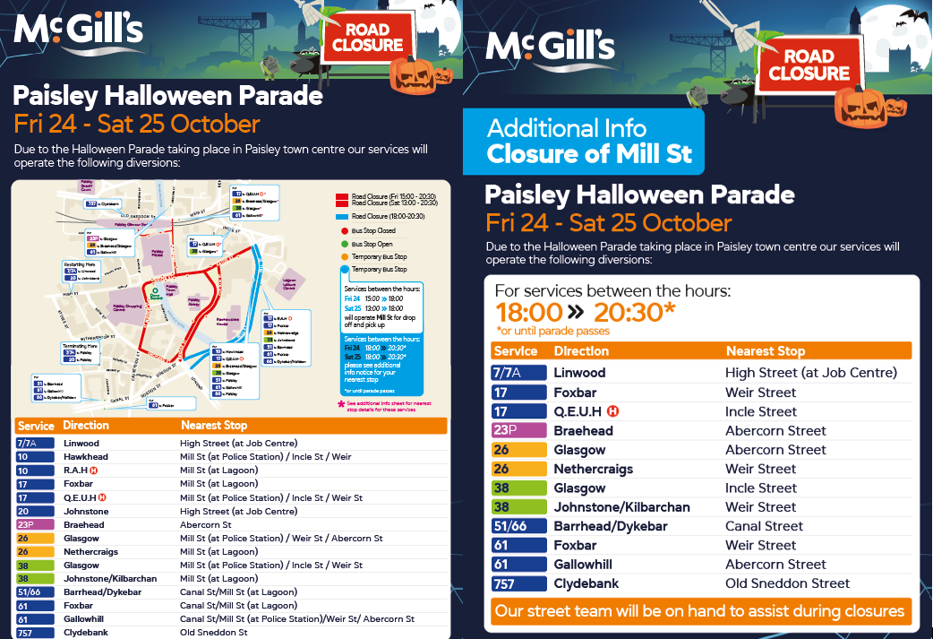 Paisley town centre is gearing up to welcome thousands of visitors for one of the year’s most thrilling events! Whether you're coming for the spooky parades, live performances, or family-friendly fun, McGill’s has got you covered with easy, hassle-free travel to the heart of the action.